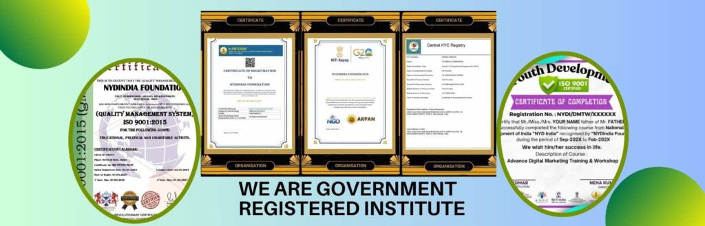 NYD India is a government registered organisation, our organisation provides quality training as well as placement facility to its candidates. All our courses are well designed. And along with this, 100% placement facility is also provided in digital marketing and artificial intelligence.